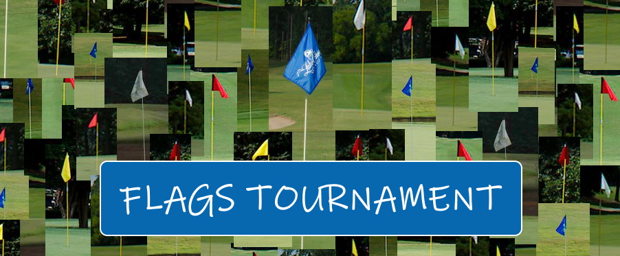 A Flags Tournament is a format in which each golfer starts the round with a designated amount of strokes and plays until they run out. Each golfer in the tournament carries a flag with their name on it as they play and uses it to mark where their final shot landed. The golfer who makes it through the course the farthest using their designated number of strokes wins.